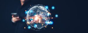 Global business holographic with businessman hand and smartphone background. Connectivity and world economy concept. Industrial technology and Innovative science theme. Leave a Comment / By Jared Stevenson / February 21, 2024