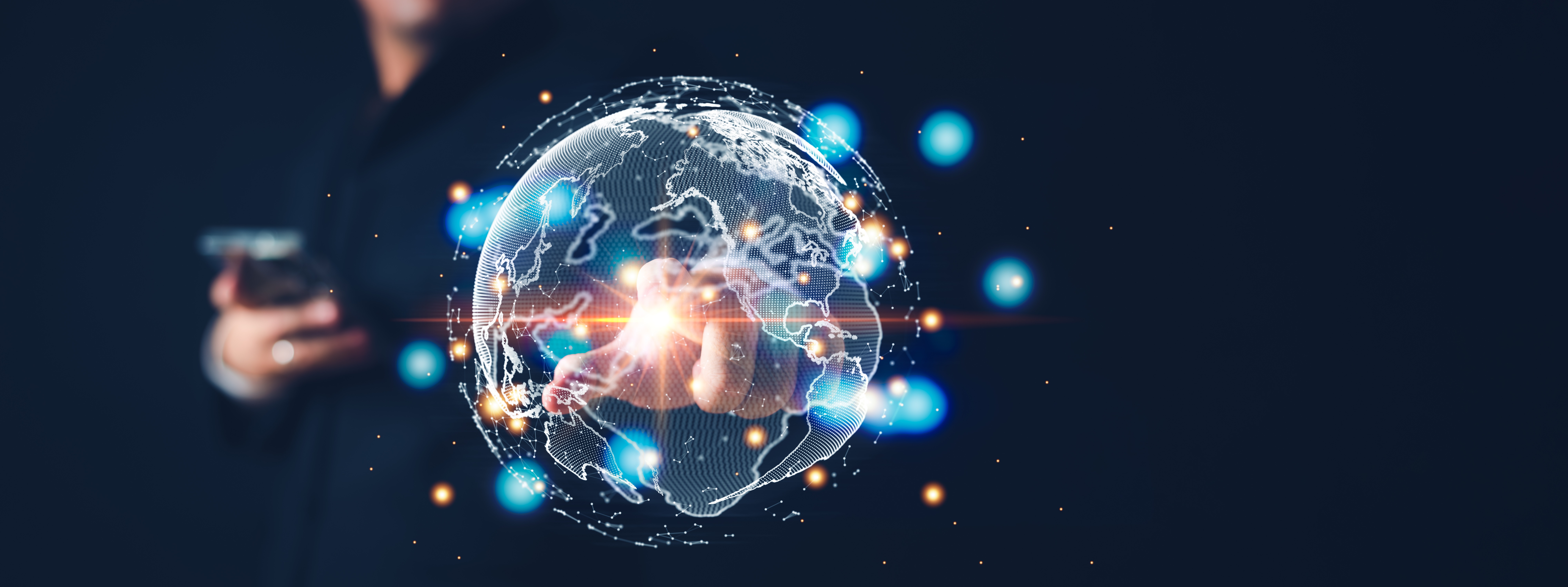 Global business holographic with businessman hand and smartphone background. Connectivity and world economy concept. Industrial technology and Innovative science theme. Leave a Comment / By Jared Stevenson / February 21, 2024